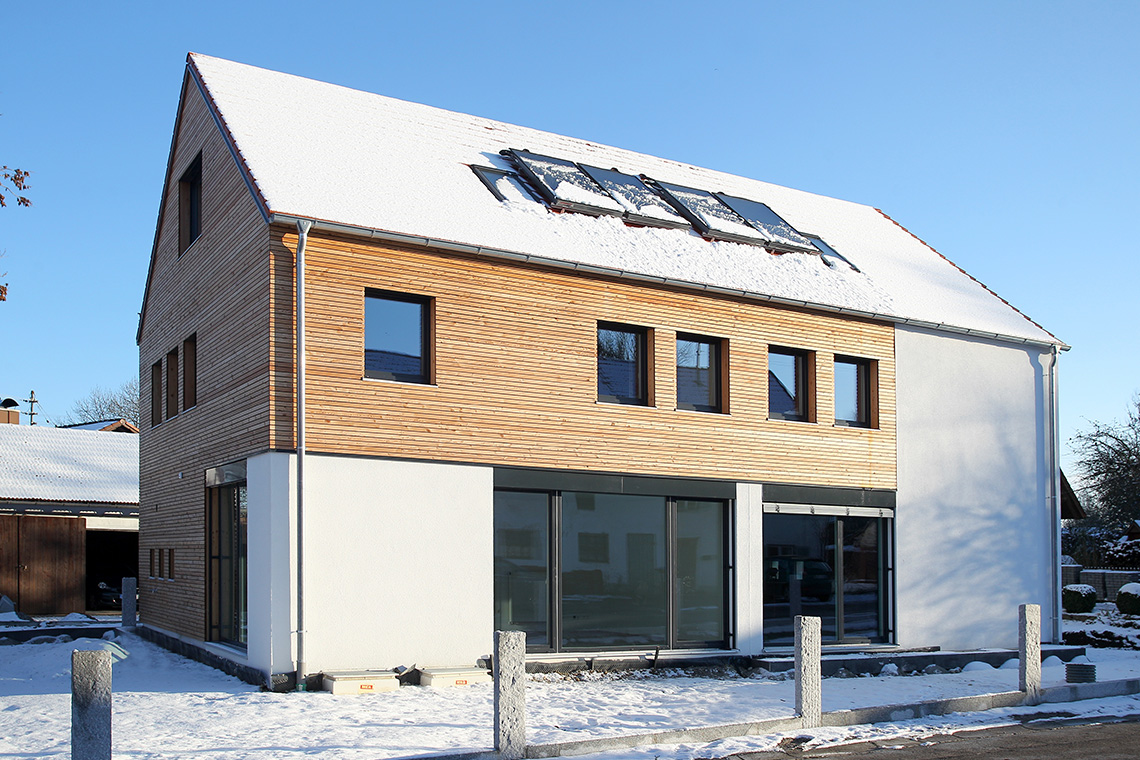 Haus S025Projektstandort: EllighofenGrundfläche: 204 m²Wohnfläche: 261 m²BGF: 542,4 m²Ein Doppelhaus in Ellighofen, einem Ortsteil der Stadt Landsberg am Lech.